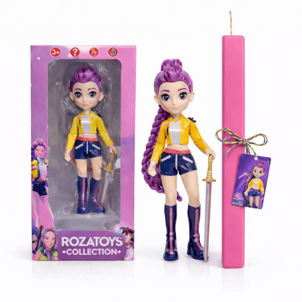 Σετ Πασχαλινής Λαμπάδας με Συλλεκτική Κούκλα Rumi 15εκ με Σπαθί & Ροζ Πλακέ Λαμπάδα 30εκ