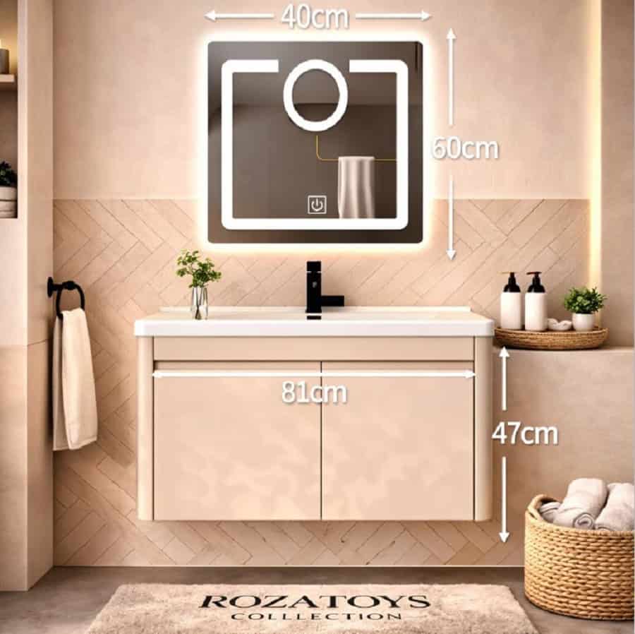 Ένα ολοκληρωμένο designer σετ με κρεμαστό έπιπλο, premium κεραμικό νιπτήρα και LED καθρέπτη Anti-Fog με 3 φωτισμούς, που συνδυάζει κομψότητα, τεχνολογία και απόλυτη λειτουργικότητα.