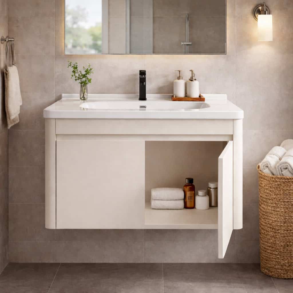 Ένα ολοκληρωμένο σετ που συνδυάζει minimal design, LED καθρέπτη με Anti-Fog & 3 φωτισμούς και πρακτικό αποθηκευτικό χώρο, προσφέροντας καθημερινή άνεση με premium χαρακτήρα.