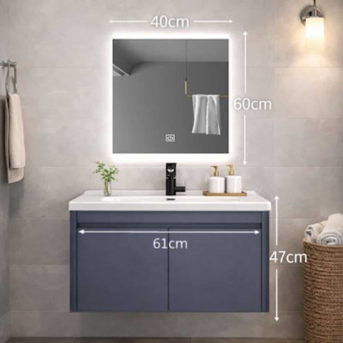 NUVIA LUX NVS15 Έπιπλο Μπάνιου Κρεμαστό 61x47cm με LED Καθρέπτη Anti-Fog & Νιπτήρα
