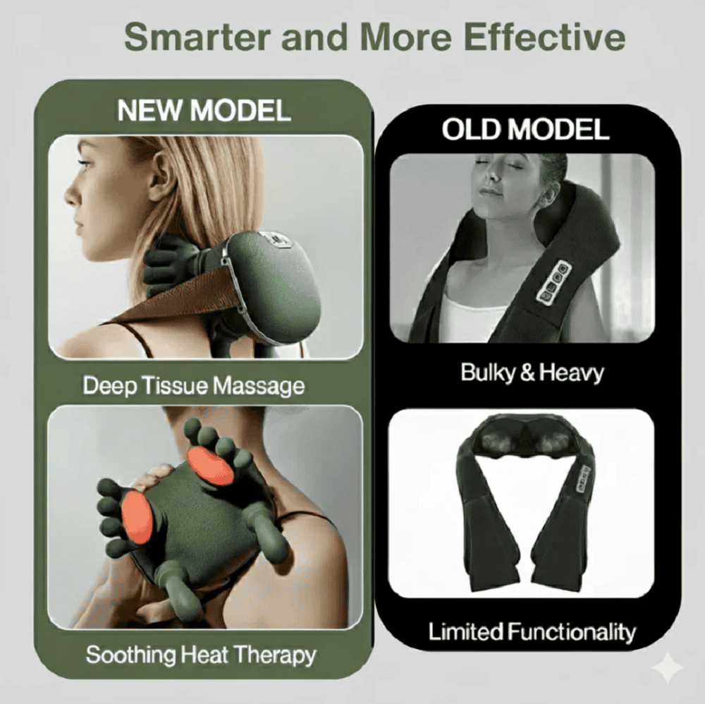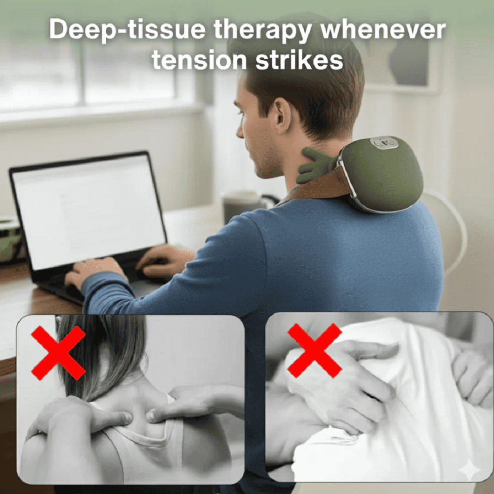 Οι μαλακές κεφαλές σιλικόνης προσαρμόζονται στην καμπύλη του αυχένα και των ώμων και εκτελούν 4D βαθύ μασάζ σε 8 κατευθύνσεις, προσφέροντας άμεση ανακούφιση από: