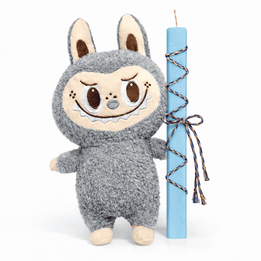 Το σετ περιλαμβάνει το δημοφιλές λούτρινο Labubu, δεμένο σε εντυπωσιακή γαλάζια πλακέ λαμπάδα 30εκ, δημιουργώντας ένα μοναδικό και μοντέρνο πασχαλινό δώρο.