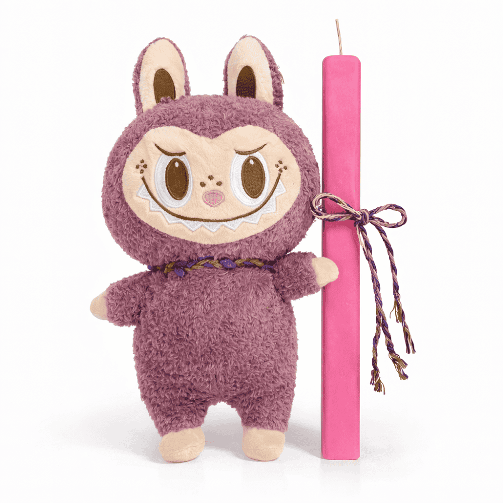 Το σετ περιλαμβάνει το δημοφιλές λούτρινο Labubu, δεμένο σε εντυπωσιακή ροζ πλακέ λαμπάδα 30εκ, δημιουργώντας ένα μοναδικό και μοντέρνο πασχαλινό δώρο.
